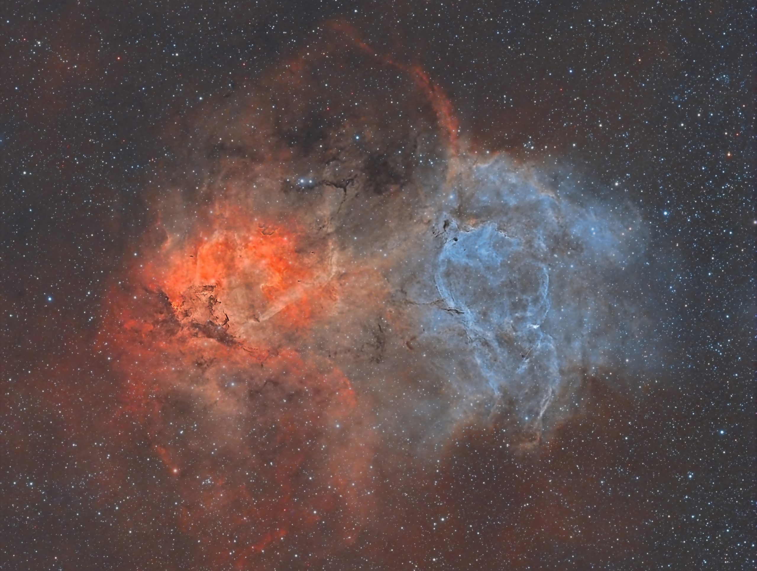 Cette image, véritable cartographie des éléments, raconte l’histoire de la formation stellaire : l’hydrogène ionisé rayonne sous l’effet du rayonnement ultraviolet, le soufre s’illumine lorsqu’il est excité par la lumière intense des étoiles massives, et l’oxygène doublement ionisé brille dans les zones façonnées par les vents stellaires. Observer IC 1805, c’est écouter le murmure d’un cœur galactique qui bat depuis des millions d’années, rappelant que même dans l’immensité du vide, la vie des étoiles est un poème de lumière.